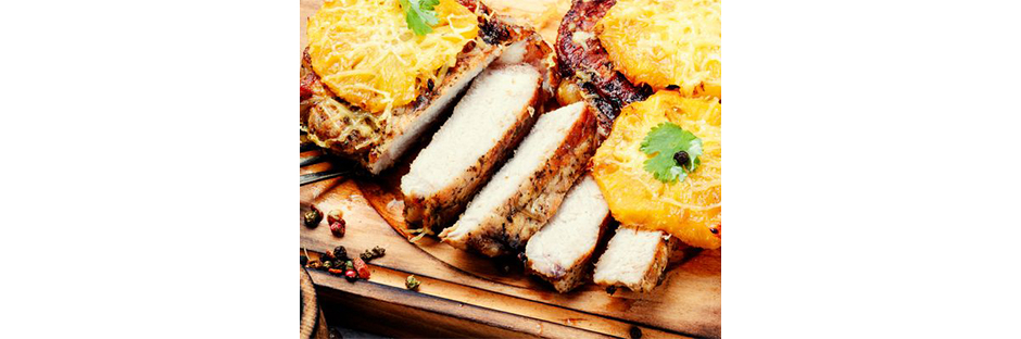 Faça alguns cortes no lombo de porco. Misture o suco de limão com o colorau, o sal e as folhas de louro. Corte o abacaxi em fatias. Passe o tempero no lombo, coloque em cada abertura uma fatia de abacaxi e leve para assar coberto com papel alumínio. Depois do lombo assado, coloque em uma travessa e guarneça os legumes refogados ligeiramente na manteiga. Salpique a salsinha e sirva em seguida. Bom apetite.