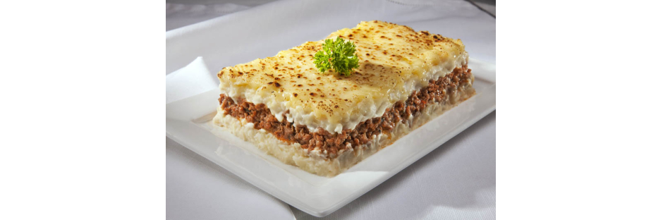 - Em um refratário forre a metade do purê de batatas,uma camada de queijo e a carne moída, o restante do purê finalize com mais queijo mussarela e polvilhe queijo ralado por cima